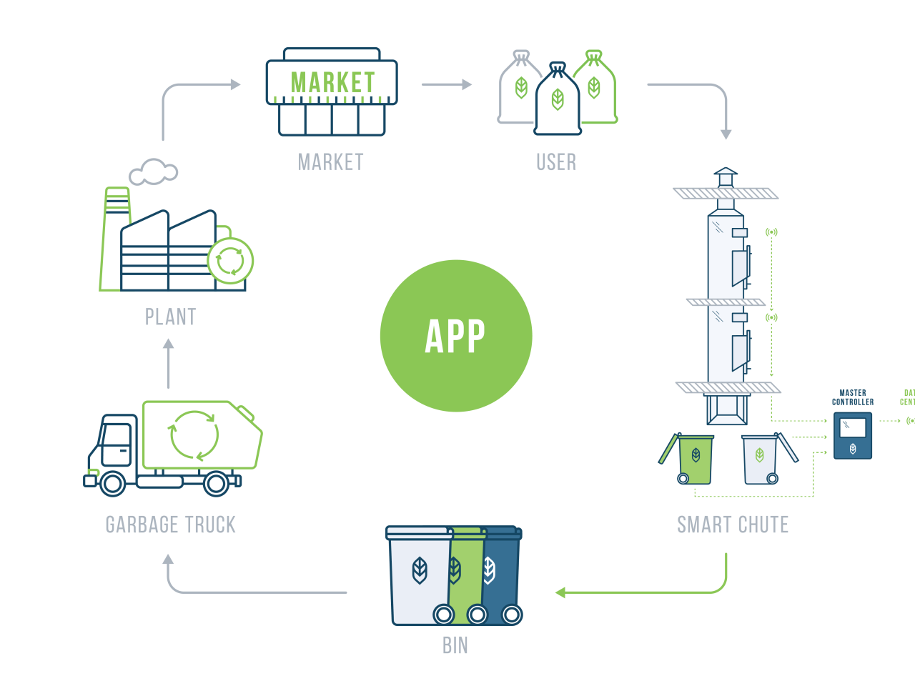 Leverage today's technology to align with smart city requirements and create a new standard for gravity chute systems. We call this standard a smart gravity chute system.